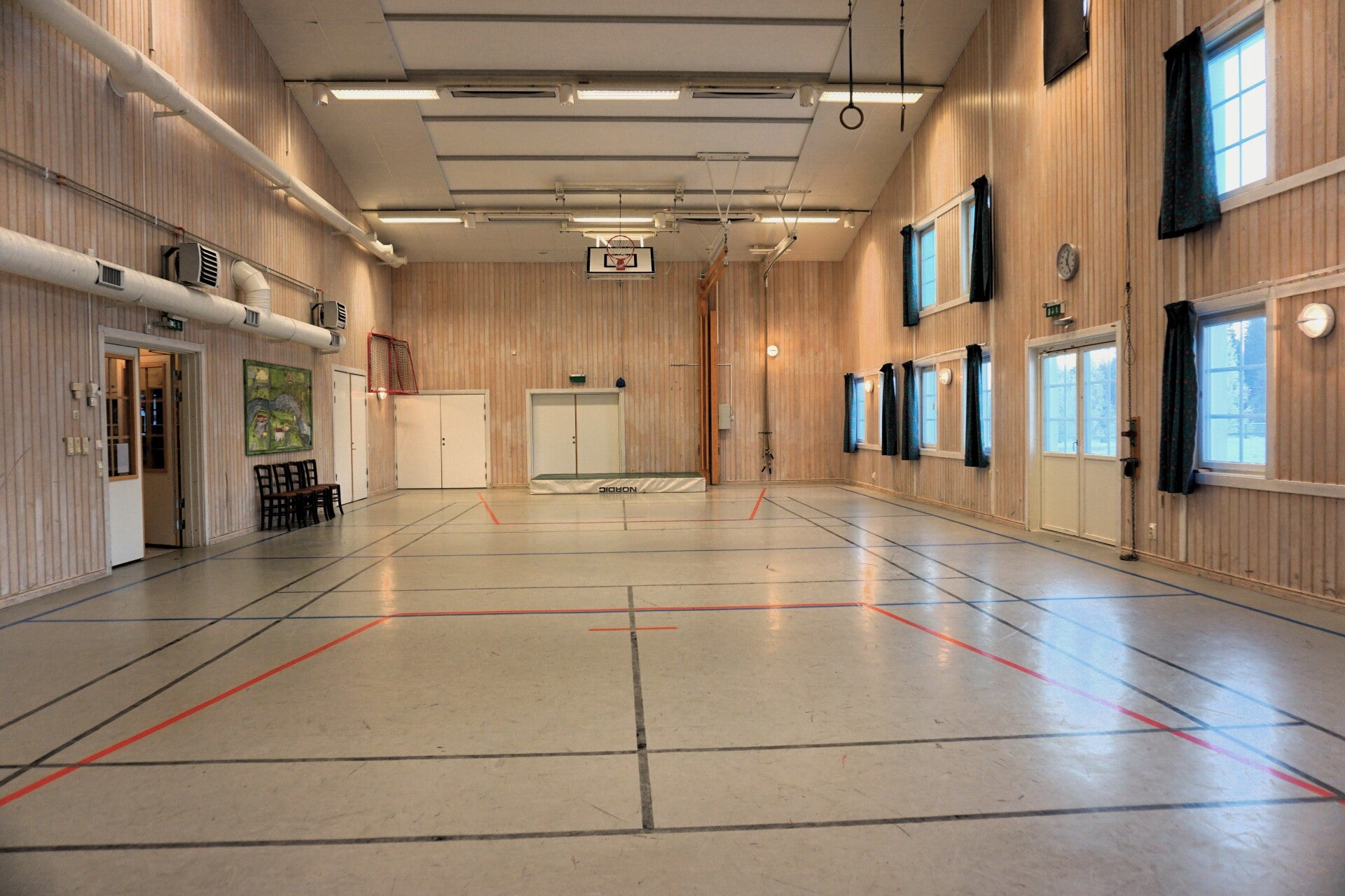 Vår Idrottshall är lämplig för flera olika typer av arrangemang, innebandyturnering (sarg finns), rundpingis, badminton, musik och teater (scen finns), fest och bröllop. Lokalen mäter 10x20 meter.